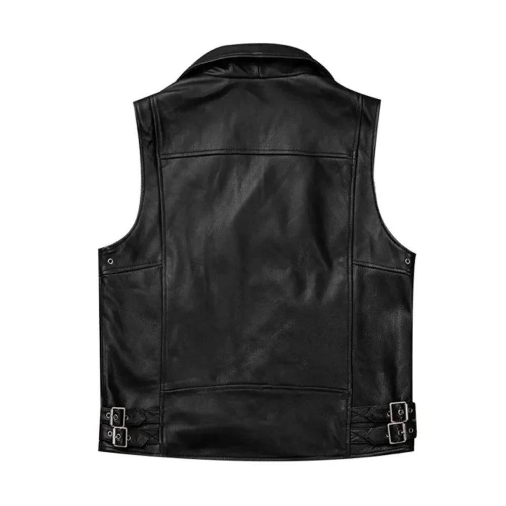 Men’s Black Biker Zipper Leather Vest